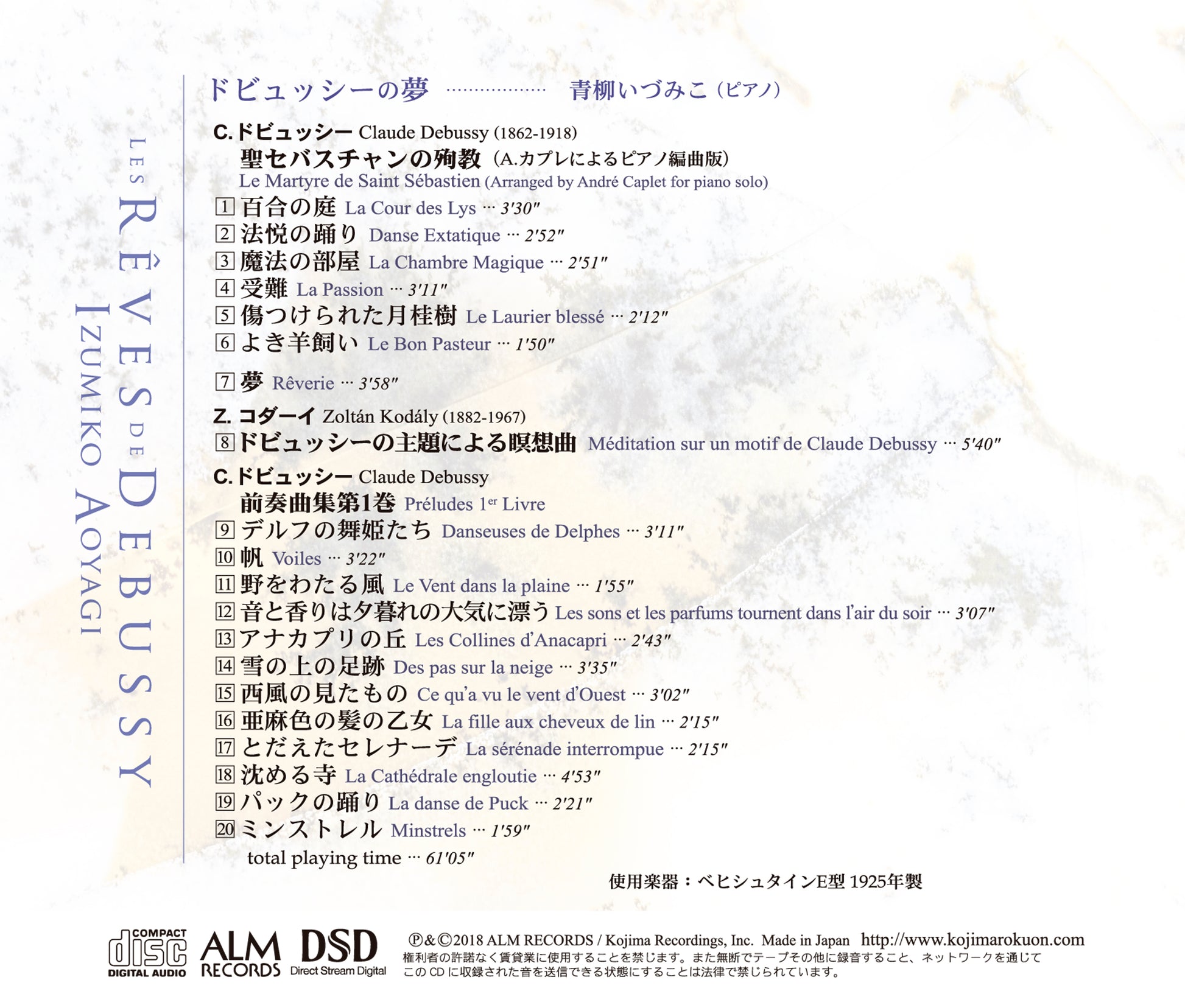 このささやかなアルバムに収録した作品は、サティが「過剰なほど大きな自信をいだいていた」と評したあなたが見た夢のほんの一部かもしれませんが、あなたが成し遂げようと願った計り知れないもの、他の誰にもできない音楽のありようを垣間見ることができて幸せです。(青柳いづみこ)