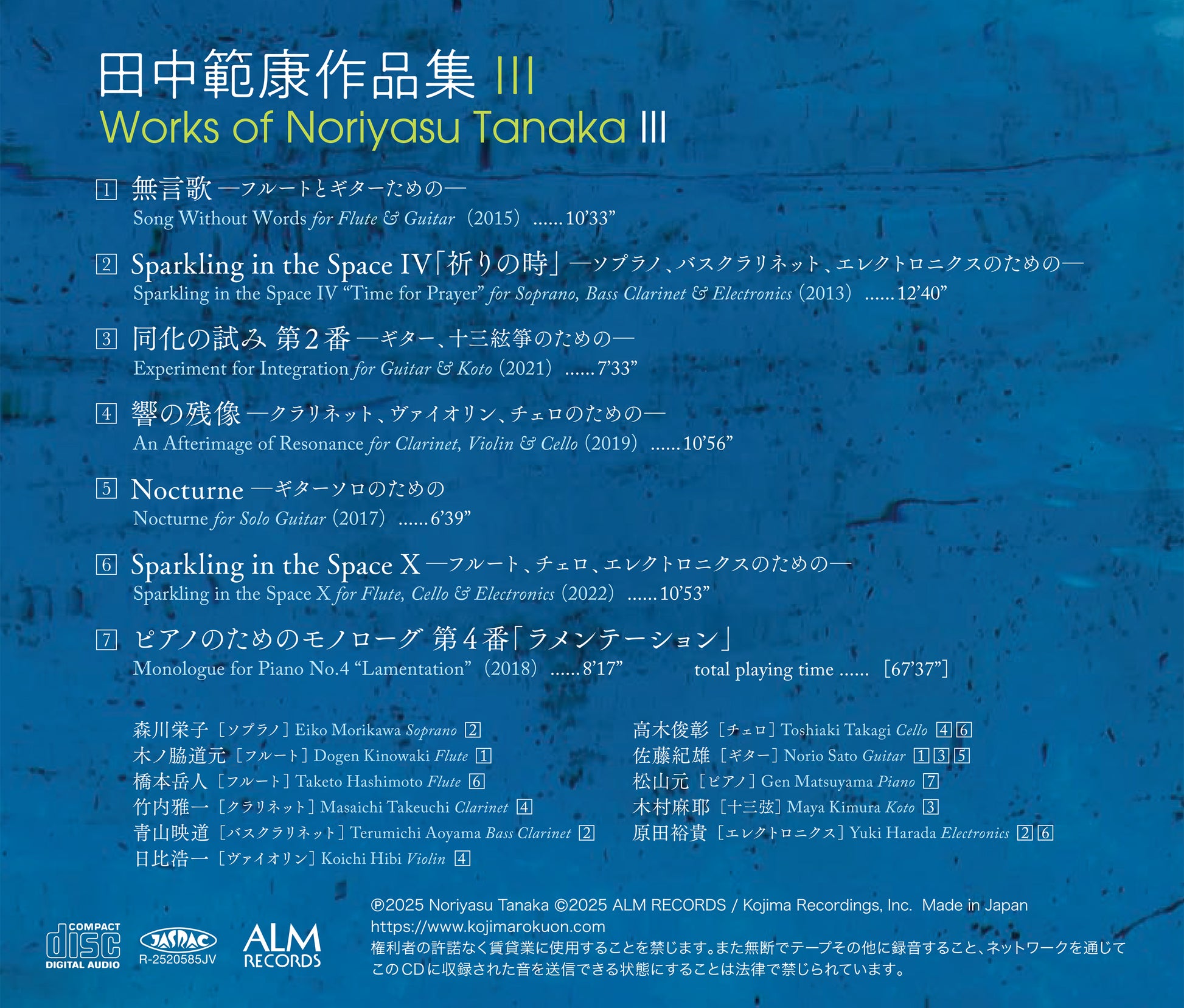 The third collection of works by composer Noriyasu Tanaka, released by ALM RECORDS.