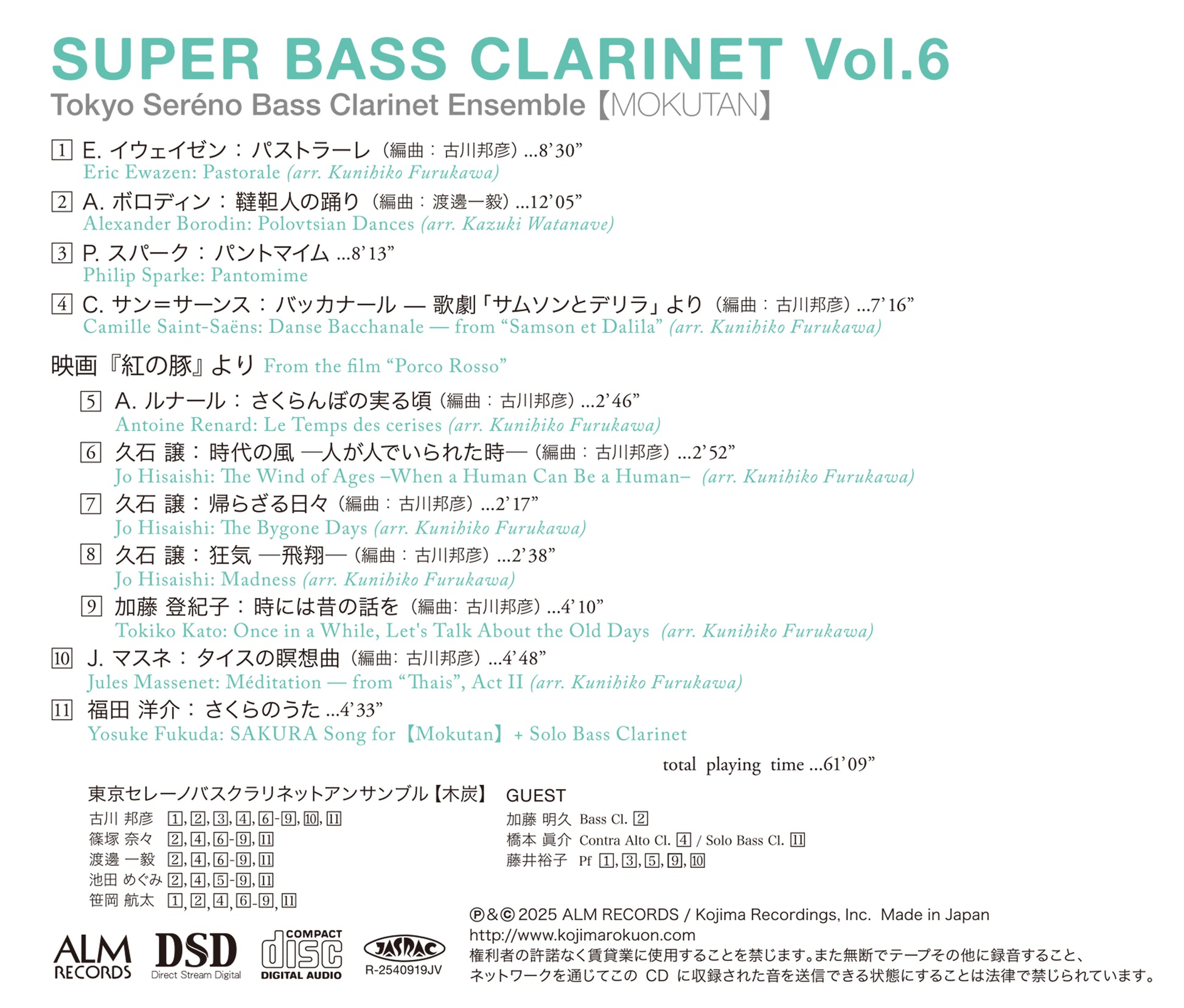 Guest Musicians: Akihisa Kato (Bass Clarinet), Shinsuke Hashimoto ( Contralto Clarinet, Bass Clarinet), Yuko Fujii (Piano)