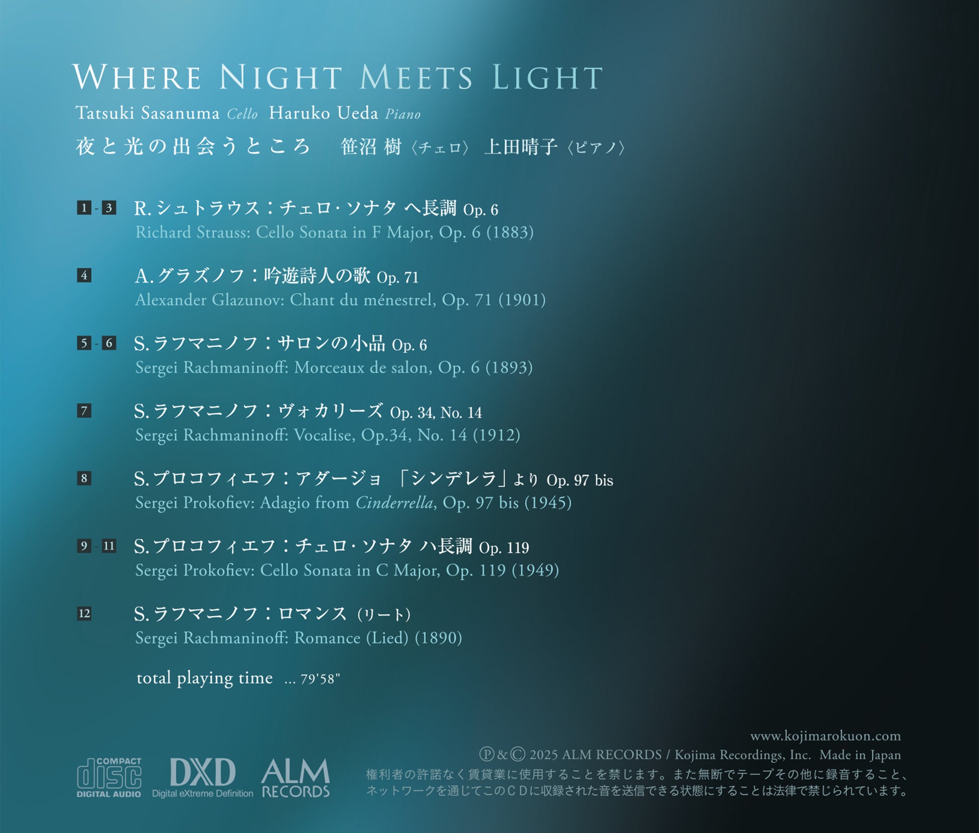 Haruko Ueda, who boasts a distinguished career and teaches at the Conservatoire National Supérieur de Musique de Paris, and Tatsuki Sasanuma, whose presence has grown unmatched in recent years — together, they form a duo whose musical resonance transcends generations. This eagerly awaited first recording captures their artistry in full bloom, offering performances rich in fresh nuance and a beauty that feels utterly natural.