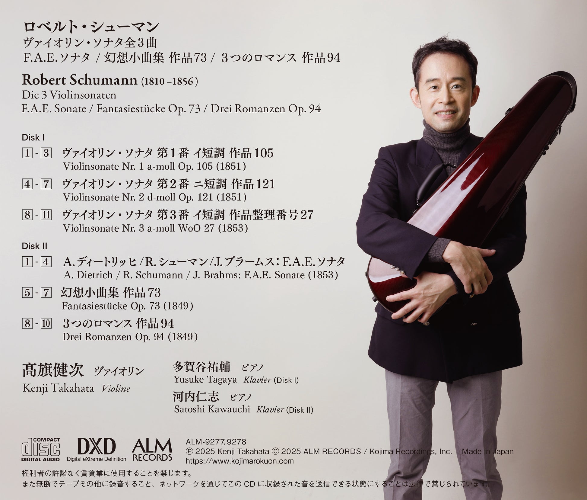 Kenji Takahata, who received high acclaim for the recording of E. Ysaÿe: Six Sonatas for Solo Violin, Op. 27, follows up with his second album, featuring Schumann.