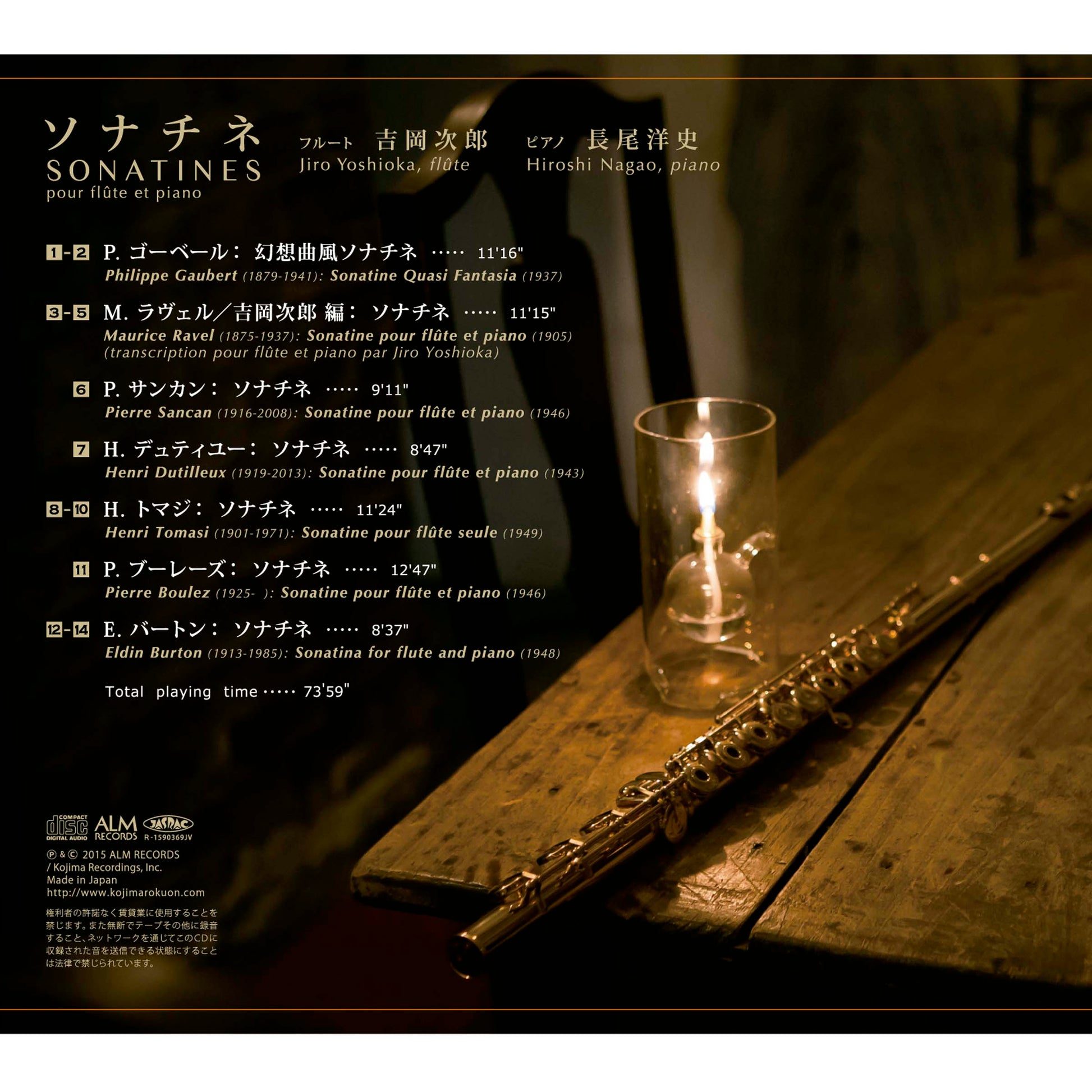 フルート界に独自の存在感を示す実力派・吉岡次郎が切り拓く小宇宙。「小さなソナタ」を意味するソナチネの、小ぶりな音楽形式だからこそ細部にまで行きわたる作曲家の創意工夫。そして数々の名ソナチネを生み出した20世紀前半のフランス音楽と、それを受け継いだアメリカ人作曲家バートンの作品から浮き上がる、薫り立つ音楽への飽くことのない探求。