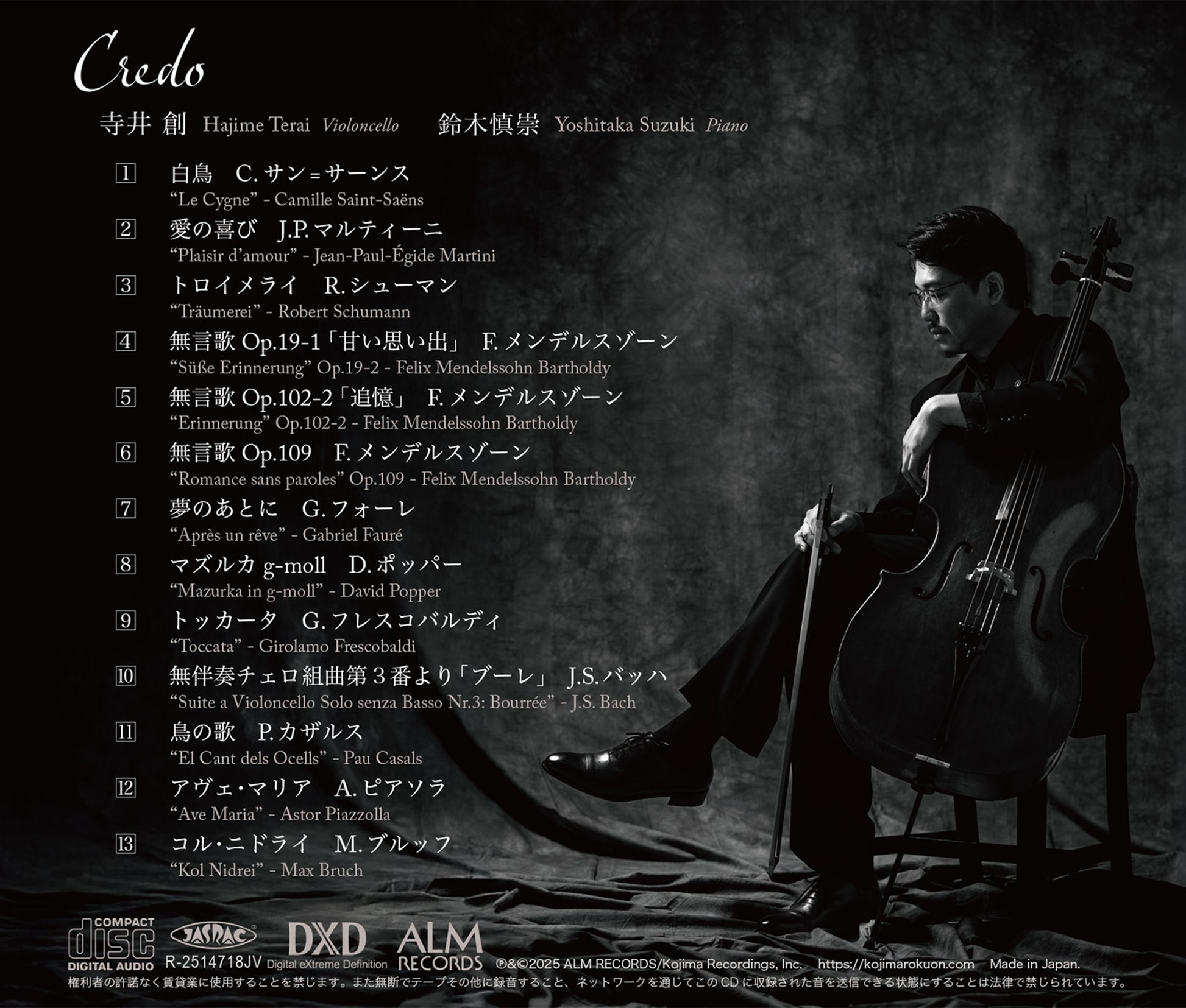 チェリスト寺井創が、チェロを始めて40年の機に、初めて形にする名曲集
